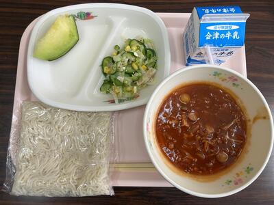 学校給食の場合、普段はミートソーススパゲティが多いのですが、今日はナポリタンです。トマト味のソースがおいしいスパゲティでした。サラダもドレッシングがおいしくてとってもイタリアンでした。