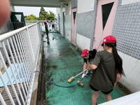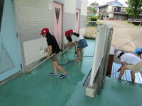 デッキブラシで汚れを落としたり、バケツで水を運んだり・・・と、一人一人が一生懸命に美化活動に取り組みました。