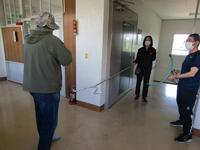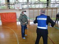 防犯教室終了後には、職員への「刺股」の使い方講習も行っていただきました。ご指導いただきました喜多方警察署の皆様、ありがとうございました。