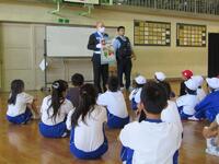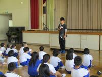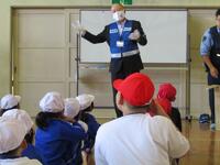 避難後の全体会では、不審者から身を守る「イカのおすし(ついていかない)(知らない人の車にのらない)(おおごえを出す)(すぐ逃げる)(しらせる)」について確認しました。