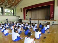 2024年6月3日 16時45分3日(月)、防犯教室を行いました。訓練では、喜多方警察署スクールサポーターの方にご協力いただき、不審者が校舎に入り込む想定で、子どもたちは体育館への避難の仕方を学びました。