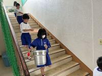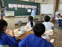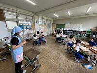 暑さも増してきたこの時期に、子どもたちにもほどよいスパイス感でした。みんなモリモリ食べて、いつもに比べ、残滓もたいへん少なかったとのことでした。栄養教諭の教室訪問では、「カレーといえばインドですが、インドにはカレーという料理はあるでしょうか?」というクイズが出されました。