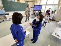 今日の3校時は、4年生が英語を使ったコミュニケーションに親しみました。