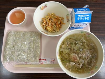 沖縄県では、豚肉はおもてなしの料理。給食メニューなので、小さめに切った豚肉でしたが、沖縄のソーキそばの汁感をしっかりと味わうことができました。