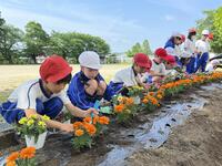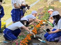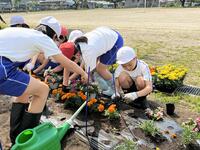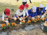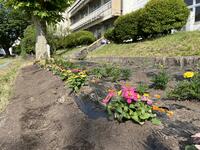 2024年5月24日 16時15分先日の1・2年生の花の苗植えに続いて、今日は3・4年生が花壇にマリーゴールドなどの花の苗を植えました。