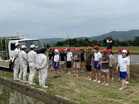2024年5月27日 17時25分27日(月)、会津農林高校耶麻校舎の千咲原農場において、5年生が田植え体験を行いました。