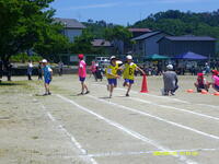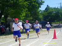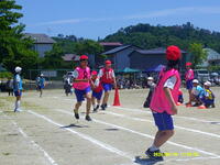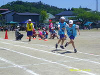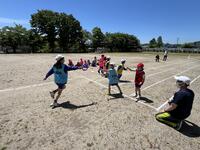 今日の朝の時間に学んだ並び方や、下学年リレーから上学年リレーへのビブスの受け渡し方もきちんと覚えて生かすことのできる山都っ子。トラックを使っての初めての練習でしたが、どのチームもちゃんとバトンがつながって、本番さながらの白熱ぶりでした。