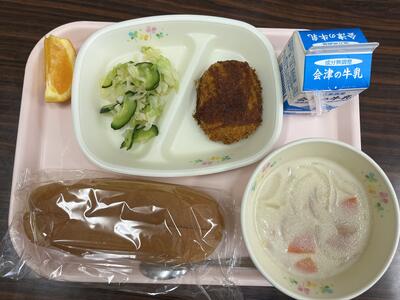 ソース味の牛肉コロッケとサラダの野菜をはさみ、とても食感の良いコロッケバーガーで、子どもたちにもたいへん好評でした。
