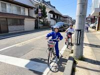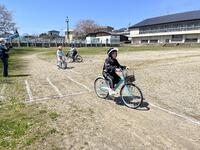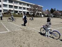 実技練習では、1・2年生は歩道の歩き方や横断歩道の渡り方、3・4年生は校庭を使っての自転車の安全な乗り方、5・6年生は、道路を使って、自転車の安全な乗り方や自転車を押しての道路の渡り方などを学習しました。