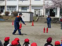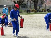 さらに、6年生は水消化器を使った消火訓練を体験しました。山都分署の皆様、ありがとうございました。