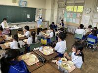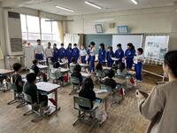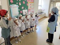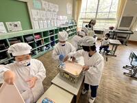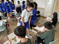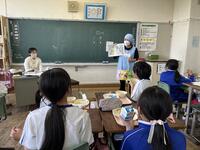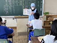 給食の時間には、栄養教諭が各教室をまわって熊本県の阿蘇山やカルデラ、地震で被害を受けた熊本城のことなどを資料をもとに紹介しました。熊本県に想いを寄せながら味わってほしいと思います。