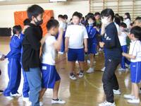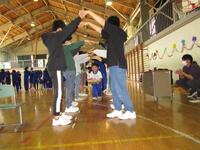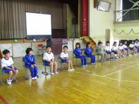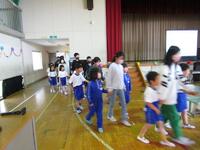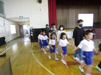 整列の仕方、入場の仕方や途中のダンス、そして後片付けなどいろいろな動きを先生と一緒に上手に学んでいます。