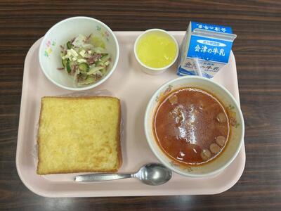 ほんのり甘いフレンチトーストは子どもたちにも大人気でした。カップレモンゼリーも調理員さんによる手作りで、おいしいレモン風味とほどよいボリューム感が満足のひと品でした。