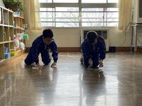 各教室の机やいすや動かせるものを廊下に出してから、隅々までゴミを掃いたり水拭きをしたりしました。今日も働きものの山都っ子たちの活躍が光っていました。