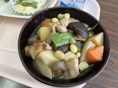 筑前煮は、たっぷりのレンコンやタケノコ、4年生の収穫した大豆などが入って、まさにカミカミメニューでした。そして今日で4年生の大豆は終了となります。4年生の皆さん、おいしくいただきました!