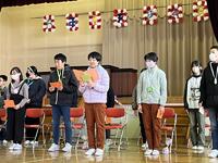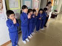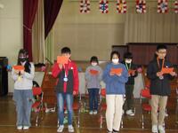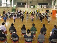 1~5年生によるプレゼントや感謝の言葉などのあと、全校生でのゲームやじゃんけん列車などをしながら、短い時間でしたが心温まるひとときとなりました。6年生からは、お礼にとすてきな「野に咲く花のように」の歌が披露されました。