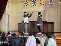 2024年3月5日 17時30分4年生が、明日の鼓笛隊移杖式に向けて鼓笛の自主練習に取り組んでいました。