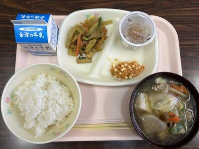 具がたっぷりのいも汁と、発酵食品の組み合わせで体も元気になりそうなチーズキムチ納豆、腸内の悪玉菌を減らすというフラクトオリゴ糖が含まれるヤーコン(喜多方市産)を使ったきんぴらです。