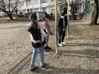 今日は、各委員会ごとにポスターづくりに励んだり、自分たちの委員会で使う部屋を掃除したり、最後の1カ月でどんなことをしていくかを話し合ったりしました。体育委員会では、例年より早そうな春に備えて鉄棒やブランコを取り付けたりしていました。
