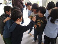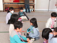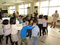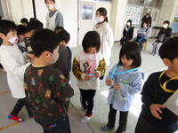 1年生は、準備や計画に張り切って臨みながら、この日を待っていました。歌を歌ったり「じゃんけん列車」をしたりした後は、手をつないで校舎を案内したり・・・。そして準備しておいたプレゼントを、年長さんたちに渡すと嬉しそうな様子に子どもたちも満足そうでした。