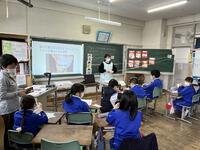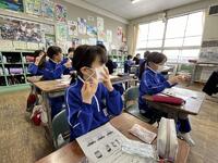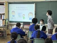 2024年2月8日 16時30分4年生の今日の学級活動は、養護教諭と担任とのティームティーチングによる「正しいマスクの付け方とせきエチケットを身に付けよう」の学習です。