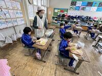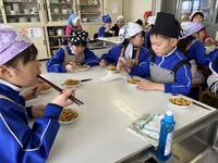 オタネニンジンについて学んだ子どもたちは、「おたねくん」を教室にお迎えしながら、おいしく今日のカレーライスをいただきました。