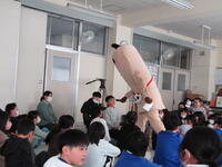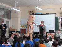 2024年1月22日 17時00分会津伝統野菜「オタネニンジン」の妖精「おたねくん」が、22日(月)山都小学校にやってきました。