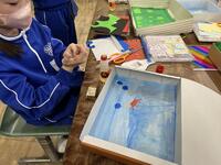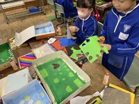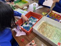 2023年12月5日 16時40分2年生の図工科では、箱の形や色などの特徴からお話を考えて、それをすごろくゲームで表しました。