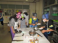 今日は、栄養のバランスを考えて1食分の献立を作ることです。子どもたちは、グループごとに計画に沿って、材料を切ったりゆでたり炒めたりしながら、楽しく調理を進めることができました。