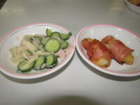 2023年12月6日 13時50分今日の献立は、高知県の郷土料理がテーマです。メニューは、ごはん、牛乳、ぐるに、かつおの甘酢あんかけ、キャベツの土佐あえ、りんごゼリーです(632kcal)。