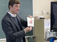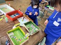 この日は、試験管の口に石けん水の膜をはって、試験管内の空気を温めたり冷やしたりしたときのせっけん水の膜の様子を観察し、気づいたことを話し合いました。