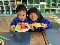 2023年12月6日 15時30分1年生が、紙粘土を使って、ごちそうパーティーを開きました。