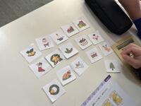 Bell(ベル)、Angel(天使)、Chimney(えんとつ)、Candle(ろうそく)、Stocking(靴下)、Turkey(七面鳥)、Holly(ひいらぎ)、Sledge(そり)・・・・などなど。絵カードを使いながら楽しくゲームを行いながら、外国語に親しみました。