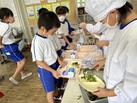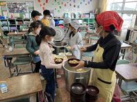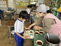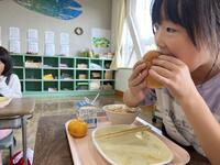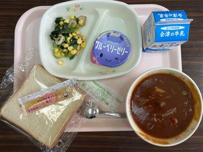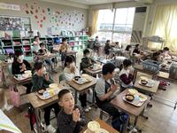 10月10日は目の愛護デーです。そこで、給食の献立も目の健康を考えたものが用意され,、お昼の放送では担当から紹介がありました。