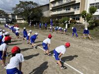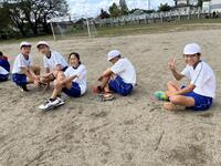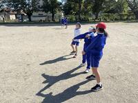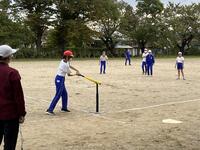 6年生が体育の時間に「Tベース」に張り切って取り組んでいました。