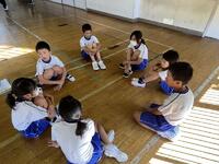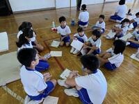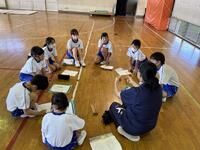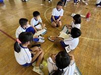 2023年10月3日 14時30分1校時、全校児童が、後期の新しい縦割り班での初めての大きな活動となる、秋に親しむ会の話し合いを行いました。