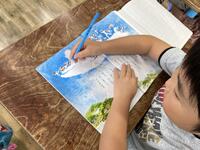 くじらに乗った気分になって、みんなで楽しく学んでいます。