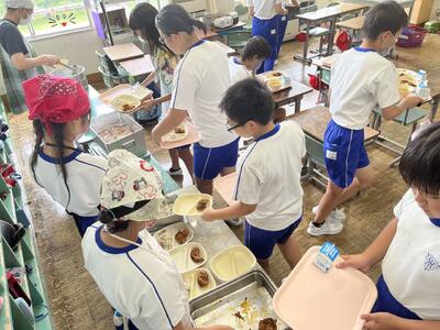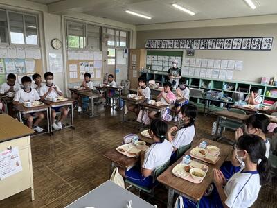 2023年8月28日 14時10分今日から山都小の2学期の給食もスタートしました。給食初日は、夏野菜カレーライス。しかも山都町産の野菜が多く使われての「大好き喜多方の日献立」です。(685Kcal)