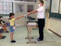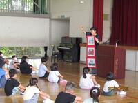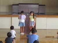 代表児童(3・4年生)からは、1学期を振り返っての作文発表がありました。作文では、自分のめてを達成するために努力してきたことや新たな目標をみつけることができたこと、苦手としていたことを自主的に練習して克服できたことなどが紹介されました。素晴らしい発表に拍手を送ります。
