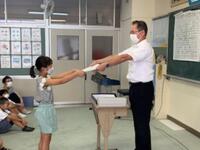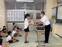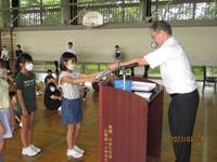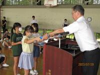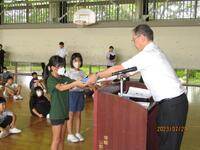 式の後には、たなばた展や夏休み中に行われた少年の主張や水泳大会やスポーツ少年団での活躍など、数々の賞状の伝達をしました。全校児童からも、温かな拍手が送られました。