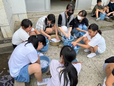 2023年8月29日 18時15分暑い季節を快適に過ごすために、衣類の清潔は欠かせませんね。29日(火)、6年生は家庭科の時間に洗濯の学習をしました。