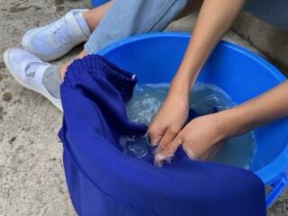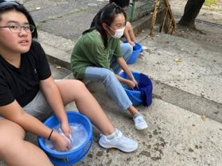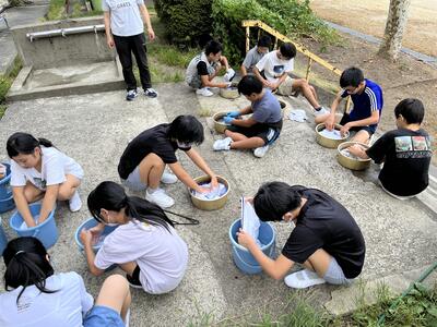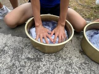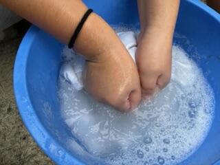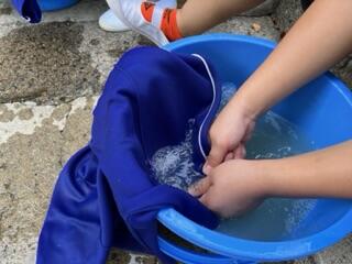 汚れの具合に応じて、もみ洗いやつまみ洗いなどしながら、一人一人しっかりと自分のシャツをきれいに洗うことができました。