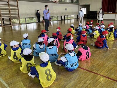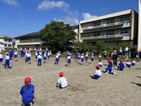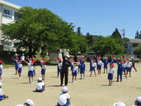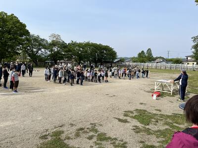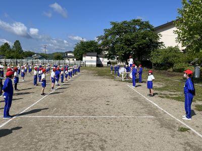2023年5月15日 14時05分今日の「山都っ子タイム」は運動会の練習です。下学年・上学年それぞれでの全員リレーの際に行う、ビブスの受け渡し方法を確認しました。