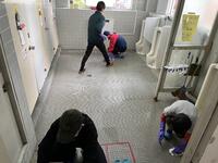6年生児童は校舎内のトイレを隅々まできれいに清掃しました。