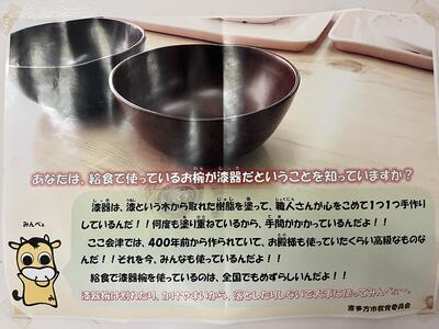 2023年5月15日 13時30分喜多方市では、給食の汁類はいつも漆器のお椀でいただいています。漆器のお椀が使われるところは、全国的に見るとそれほど多くはなく、とても珍しいことです。