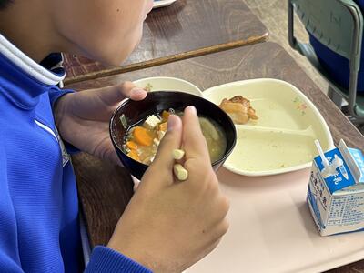 さらに、今日の味噌カレースープは、昨年度、山都小学校が新聞取材を受けながら紹介された「ふくしま健康応援メニュー」の一つです。「うま味やだしをきかせた "おいしい減塩”」を提案してくれるメニューで、塩分は少なめですが満足感のある味になっています。今日も、おいくいただきました。