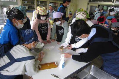 多目的室での講話後に、家庭科室で実