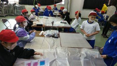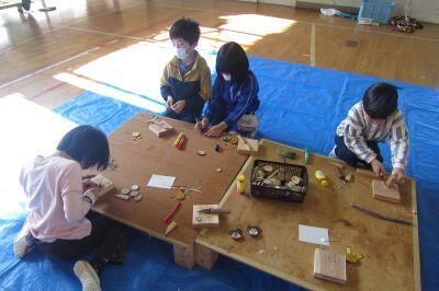 1,2年生は集中して製作に取組み、
