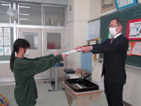 生徒指導担当や養護教諭からは、冬休みの過ごし方についてお話がありました。有意義で楽しく「にこにこ顔」で冬休みを過ごしてほしいと思います。