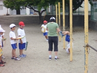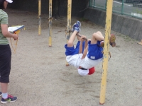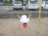 2年生の鉄棒の学習は、今日がまとめの時間でした。一人ひとりカードを持って、できたらまるをつけてもらうようにして進めました。「あし抜きまわり」や「おさるさんじゃんけん」などの技をやっているところです。一生懸命練習したのでしょう。みんなたくさんの技ができるようになりました。